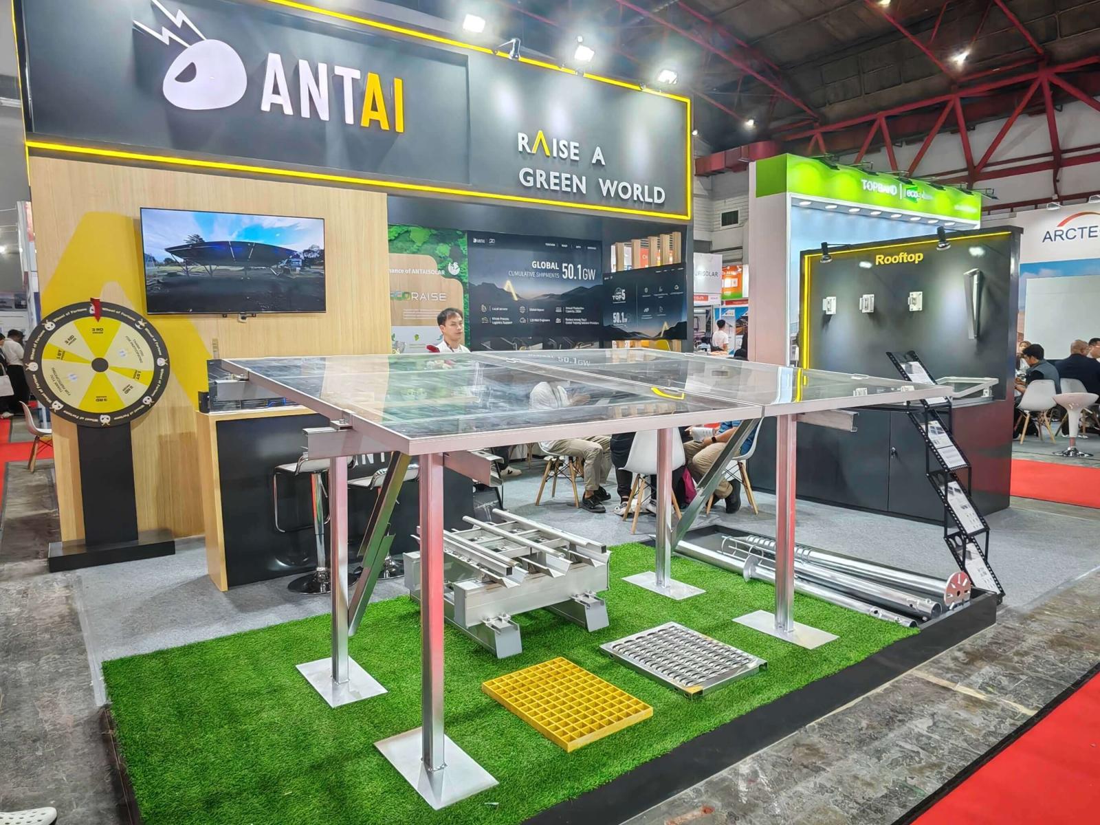 Antaisolar has showcased the highly optimized ground carbon steel mounting system, specifically designed for large-scale ground photovoltaic power plants. The exhibited carbon steel mounting system uses high-strength carbon steel material, offering outstanding weather resistance and structural stability, ensuring long-term stable operation in the complex climatic conditions of Southeast Asia. The system’s modular design simplifies the installation process, achieving faster construction cycles. Additionally, its innovative anti-corrosion treatment allows the mounts to effectively resist corrosion in high-temperature and high-humidity environments, significantly extending the lifespan. This solution has been successfully applied in numerous ground photovoltaic projects across Southeast Asia, meeting the installation needs of various terrains and providing a cost-effective choice for investors, helping drive the rapid development of the regional photovoltaic industry.