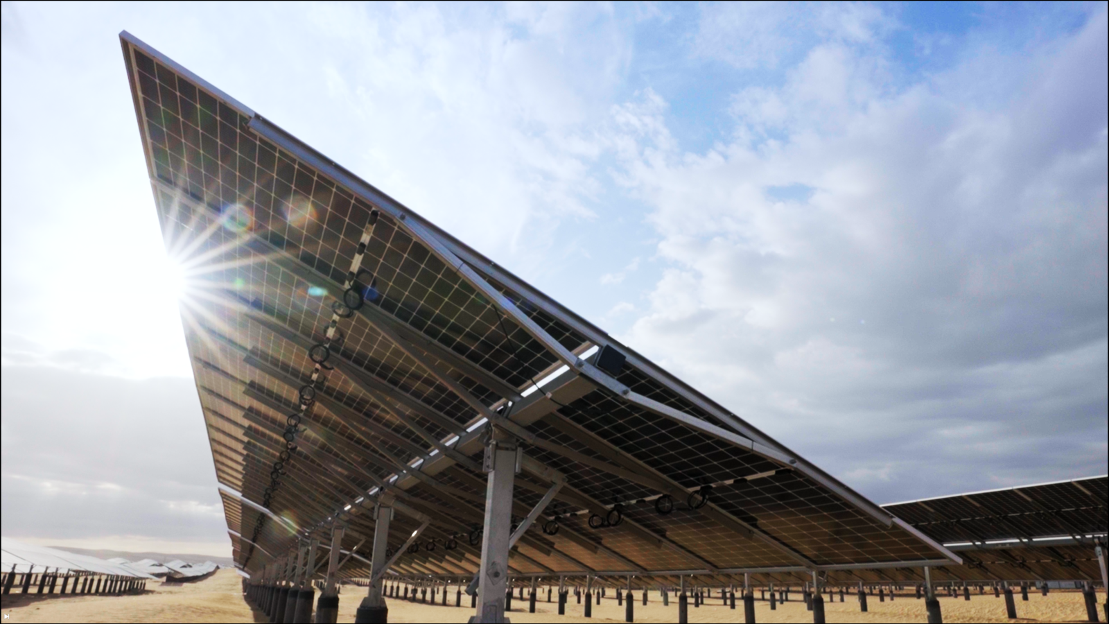 ● The system supports flexible north–south tilt adjustments, allowing operators to set optimal seasonal angles and enhance irradiation capture over the project lifecycle.